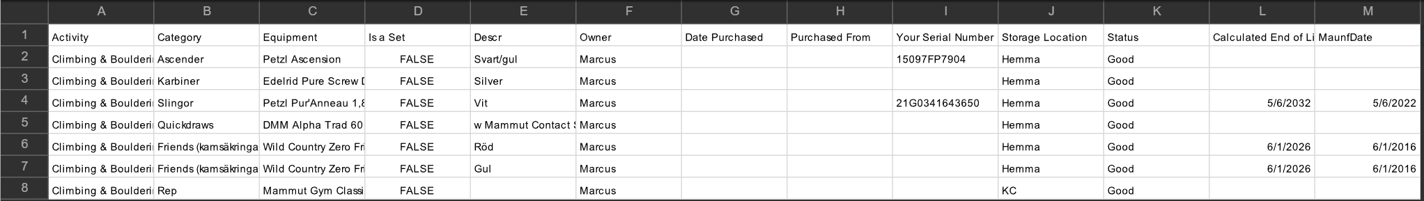 If you have the same type of equipment in different Activities, i.e. Climbing backpacks and hiking backpacks, and want to list them all toghether the tool Gear by catregory can be used.
