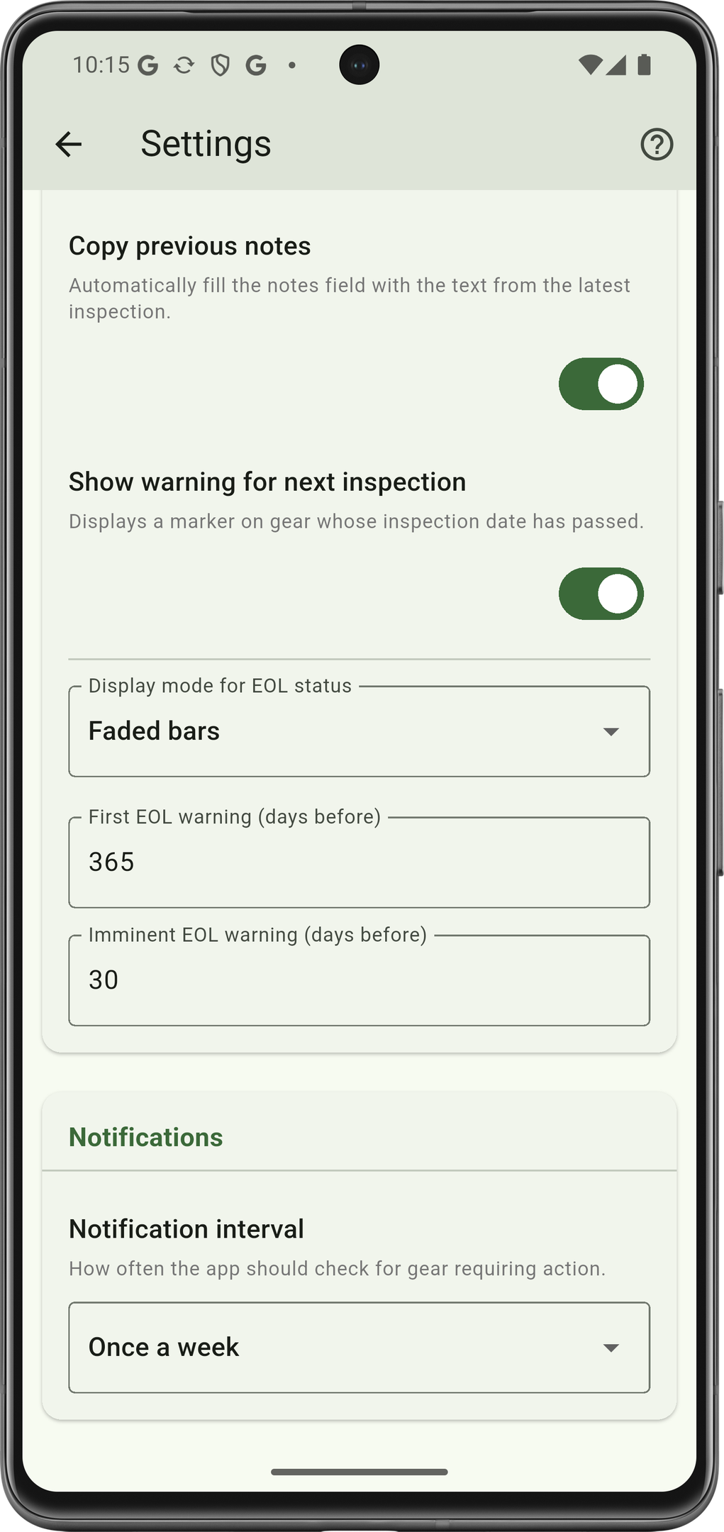 Use the built in functions to keep track of your gear'sEnd-of-Life by entering the Manufacturing Year, and Month is known.